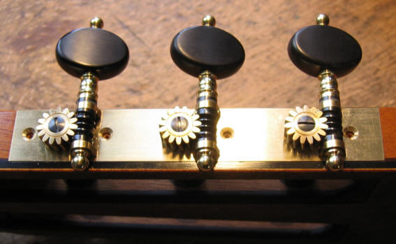 Es sind Drahtsaiten oder drahtumwickelte Darmsaiten aufgespannt,