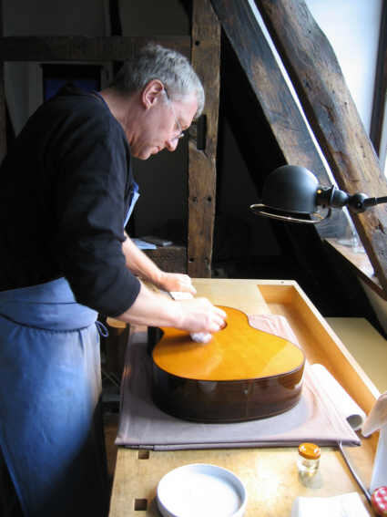 durch den Druck der Saiten auf den Korpus festgehalten wird. Das