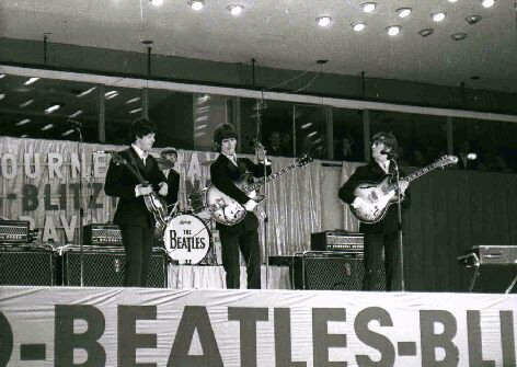 Die Beatles an sich haben mich weniger als Kultereignis interessiert. Für mich war immer die Musik das Maß der Dinge. Ich spielte zu der Zeit als Drummer in einer Schülerband und natürlich spielten wir auch - wie es damals üblich war - die Beatles-Hits nach. Man muss dazu wissen, dass es keinerlei Songbooks gab. Allenfalls die Texte wurden gelegentlich in Bravo abgedruckt oder man fand sie auf oder in den Plattenhüllen. Die Harmonien und Akkorde musste man sich selbst heraussuchen - für viele Beatles-Songs durchaus keine leichte Übung. Mitunter wurde die Sache sogar abenteuerlich. So hatten wir am Ort eine angesagte Band (The Substitutes), die Beatles-Songs bereits spielte, bevor sie auf Platte erschienen waren. Wie das? Nun - damals erhielt der populäre Sender Radio Luxemburg offenbar von der Record-Company kurz vor einer anstehenden Veröffentlichung Vorab-Tapes. Diese wurden vornehmlich mitten in der Nacht gesendet, gewissermaßen als Geheimtipp. Die Band bannte das Ereignis sofort auf Tonträger (damals oft ein Grundig-Tonbandgerät) und konnte es in der Regel schon beim nächsten Auftritt am Wochenende zum Besten geben. Selbst Taxman schafften sie locker einschließlich Original-Solo. Doch zurück zum Live-Ereignis. Ein wenig Kult musste doch sein. Zusammen mit einem Freund ging es schon weit vor Einlass im uniformen Outfit zur Grugahalle: Beatles-Stiefel, schwarze Hosen und graue Jacken mit Samtkragen trafen auf Beatles-Stiefel, schwarze Ho... Schon irgend wie beknackt - aus heutiger Sicht. Allerdings: Einheitslook auf Grund von Gruppenzwängen anderer Art ist ja heute auch üblich unter Jugendlichen. Dann war endlich Einlass und damals wie heute drängten die Fans sich fast zu Tode, obwohl doch nun wirklich jeder eine Karte für einen Sitzplatz hatte, denn auch der Innenraum der Halle war bestuhlt. Die Halle selbst und zumal die Bühne wirkten schmucklos. Über wesentliche Showelemente wie etwa Beleuchtung hat sich zu der Zeit niemand Gedanken gemacht. Lediglich rings um den Bühnenrand waren Bodenfluter aufgestellt. Wie die Zeit bis zum Beginn der Show verging, weiß ich nicht mehr, aber ich erinnere mich, dass es irgendwie athmosphärisch knisterte. Spannung und große Erwartung lagen in der Luft. Dann ging es los. Zunächst der Auftritt von Vorgruppen: Die als "deutsche Beatles" bezeichnete Hamburger Band "The Rattles" und die britischen Formationen "Peter and Gordon" und "Cliff Benett and The Rebel Rousers". Aber eigentlich interessierten sie uns nicht sonderlich. Die Vorgruppen spielten jeweils 30 Minuten. Während der Umbaupausen wurden über den Hallenlautsprecher "Hofberichte" vermeldet. Ungefähr waren sie von folgendem Kaliber: "Soeben wurde der Sonderzug der Beatles bei Siegen gesehen" oder "Paul soll im Speisewagen eine Wurst gegessen haben". Jedesmal brach in der Halle ein Tumult aus. Endlich machten sich die Bühnenhelfer an den alles entscheidenden Umbau. Da standen sie dann endlich, die sattsam bekannten Vox-Amps in ihren Chromgestellen, die drei Mikrofonstative am Bühnenrand und - ja, und dann wurde sie auf das Podest gestellt - Ringos Schießbude, Marke Ludwig, in dem bekannten melierten Design. Als die Bass-Drum mit dem Beatles-Logo aufgestellt wurde, hatte ich den Eindruck, die Halle würde gleich zusammenbrechen, so groß war der Jubel. Als aufstrebender Musiker habe ich den Aufbau der Beatles-Musikanlage genau beobachtet. Was uns damals so begehrenswert erschien, war aus heutiger Sicht wirklich eine jämmerliche Ausrüstung für die bekannteste Band der Welt. Die Gitarrenverstärker hatten gerade mal 100 Watt und die PA bestand aus zwei an den Bühnenecken aufgebauten Echolette-Boxen. So würde heute nicht mal mehr eine Dorfkapelle auftreten!