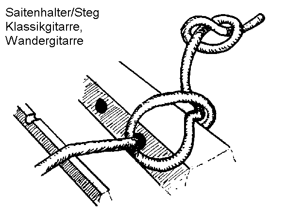 Saiten verlaufen vom Saitenhalter über den Steg, der allein
